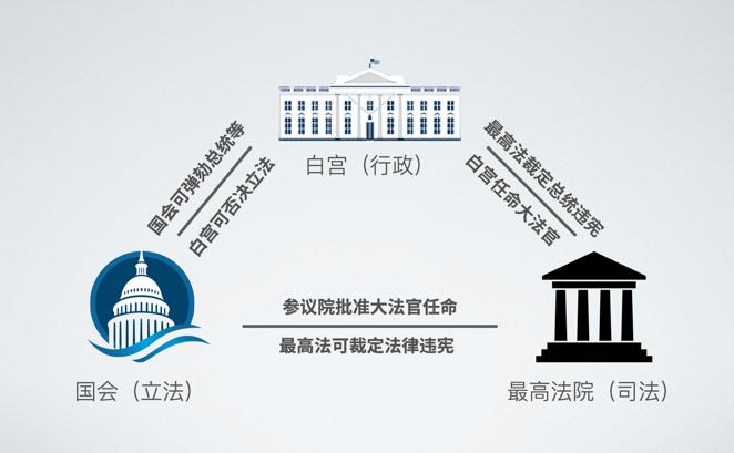 眾所周知,“美國政治制度是行政、立法、司法三權(quán)分立,總統(tǒng)、國會與最高法院及其相關(guān)機構(gòu)各司其職,相互制衡!