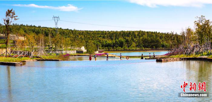烏蘭浩特市天駿山,藍(lán)天白云倒映湖面,四周格;êSL(fēng)搖曳。誰(shuí)也想不到,多年前這里竟是一個(gè)連雜草都沒(méi)多少的廢棄采石場(chǎng)。