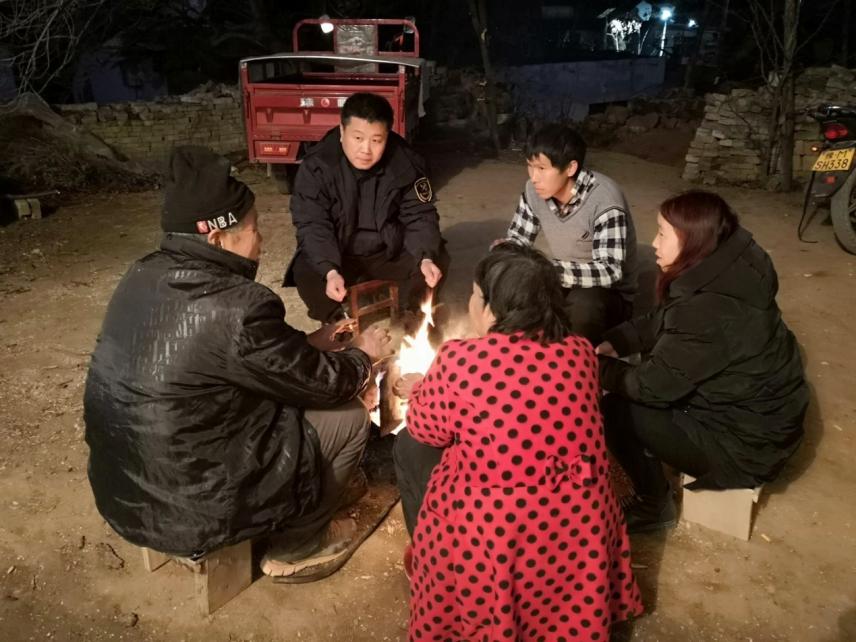 海關(guān)扶貧干部王曉騫和村民圍著火盆談心