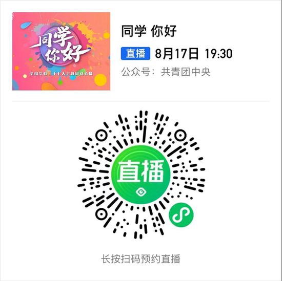 全國(guó)學(xué)聯(lián)與你同拼搏,同前進(jìn),共享這場(chǎng)青春盛會(huì)。長(zhǎng)按下方圖片掃碼預(yù)約直播吧,不見(jiàn)不散!