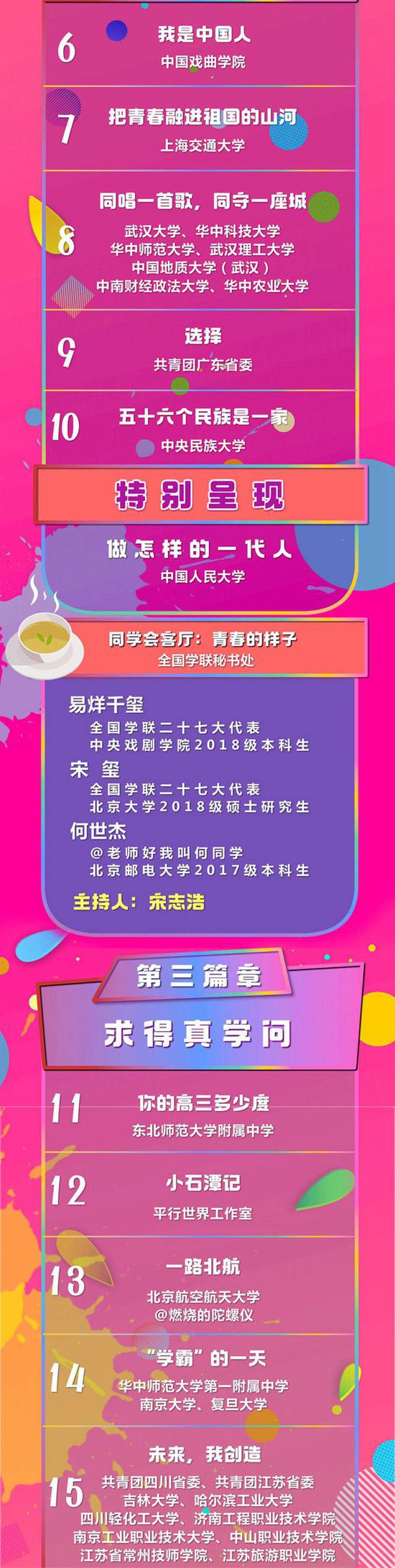 會(huì)議期間,團(tuán)中央全國(guó)學(xué)聯(lián)將于2020年8月17日19:30,通過(guò)“學(xué)習(xí)強(qiáng)國(guó)”學(xué)習(xí)平臺(tái)、央視新聞客戶端及@共青團(tuán)中央微信、微博、B站、快手、抖音、微視、斗魚(yú)、虎牙、今日頭條等官方賬號(hào)及等平臺(tái)開(kāi)展主題網(wǎng)絡(luò)直播活動(dòng),更多精彩,歡迎鎖定!