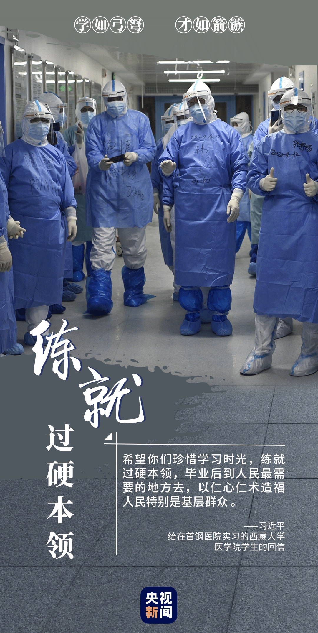 練過硬本領(lǐng),做新時代奮斗者。在決勝全面小康、決戰(zhàn)脫貧攻堅的收官之年,在實現(xiàn)“兩個一百年”奮斗目標的歷史交匯之年,新時代中國青年同億萬人民一道,在實現(xiàn)中華民族偉大復(fù)興中國夢的新長征路上奮勇搏擊。
