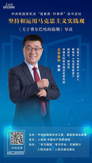 中國(guó)共產(chǎn)黨新聞網(wǎng)北京8月20日電 (謝磊 曹淼)日前,2020年中央和國(guó)家機(jī)關(guān)“強(qiáng)素質(zhì)·作表率”讀書活動(dòng)舉辦第三講,圍繞“重溫馬克思主義經(jīng)典,深化習(xí)近平新時(shí)代中國(guó)特色社會(huì)主義思想學(xué)習(xí)”這一主題,邀請(qǐng)中國(guó)社會(huì)科學(xué)院中國(guó)歷史研究院副院長(zhǎng)、研究員鐘君做客講堂,以“堅(jiān)持和運(yùn)用馬克思主義實(shí)踐觀”為主題,導(dǎo)讀《關(guān)于費(fèi)爾巴哈的提綱》。