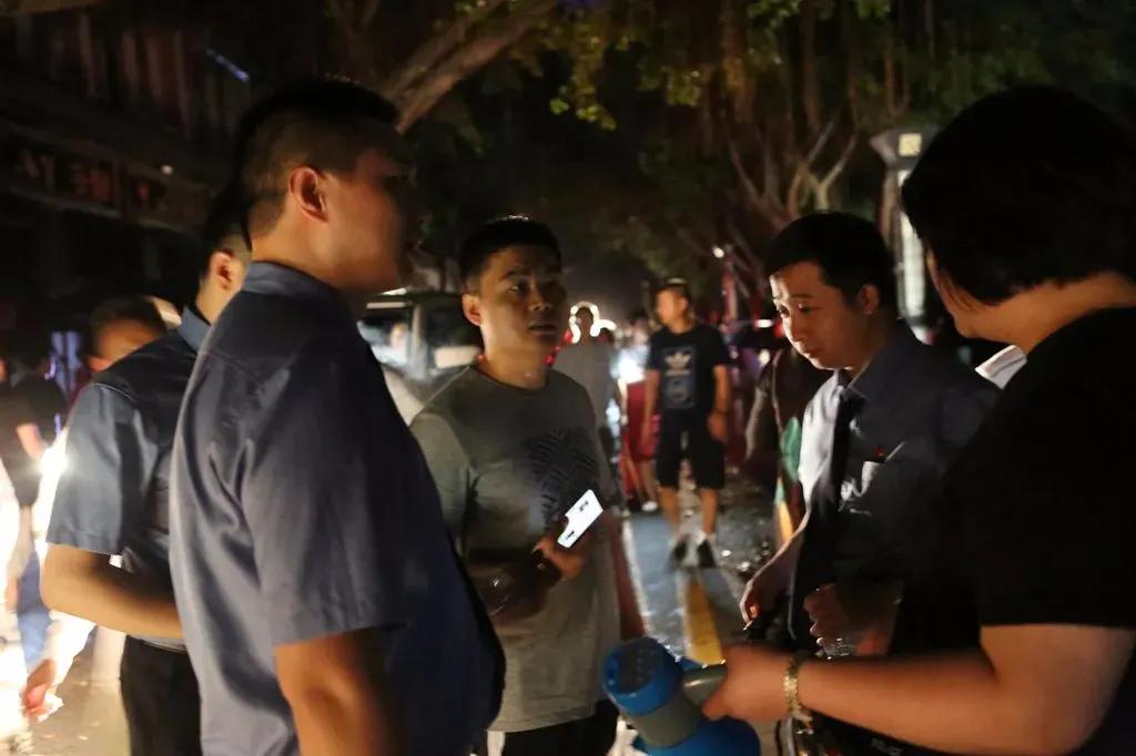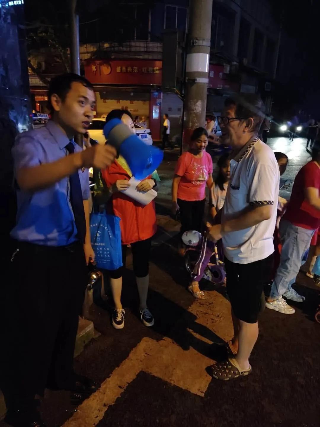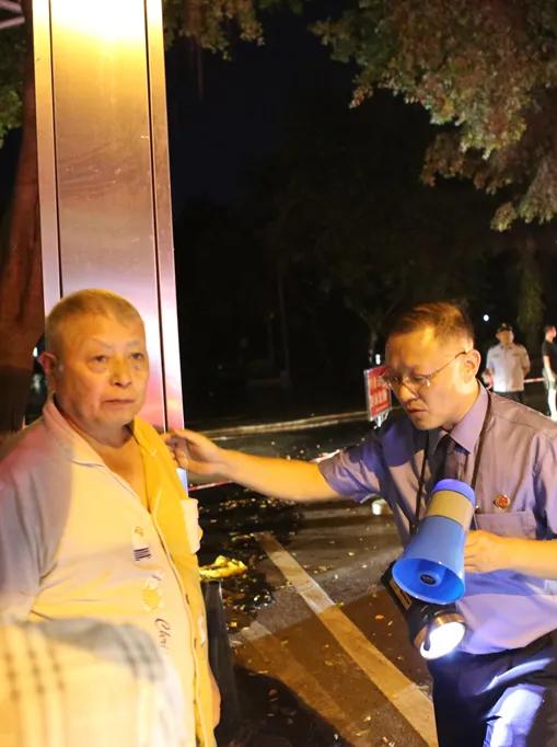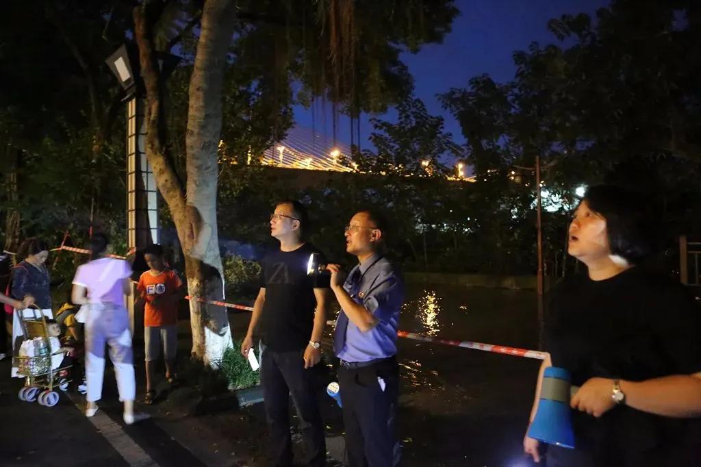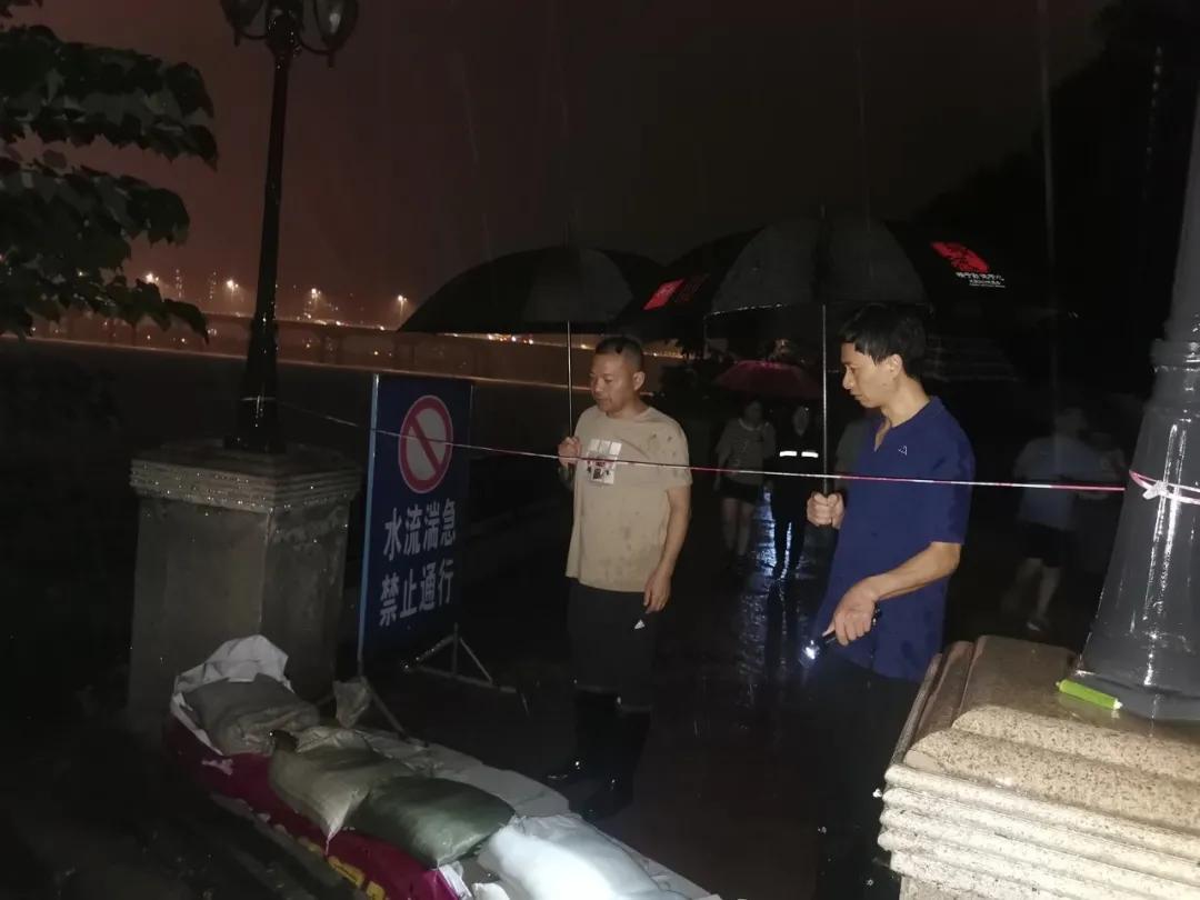 20點30分許,長江洪水漫入濱江路,值勤檢察干警手持電筒、喇叭,耐心細致地勸導和協助群眾轉移、疏散,密切觀察水位上漲情況,協助相關部門設置移動警戒線,保障人民群眾生命安全。