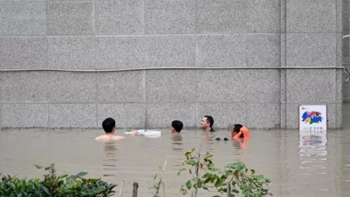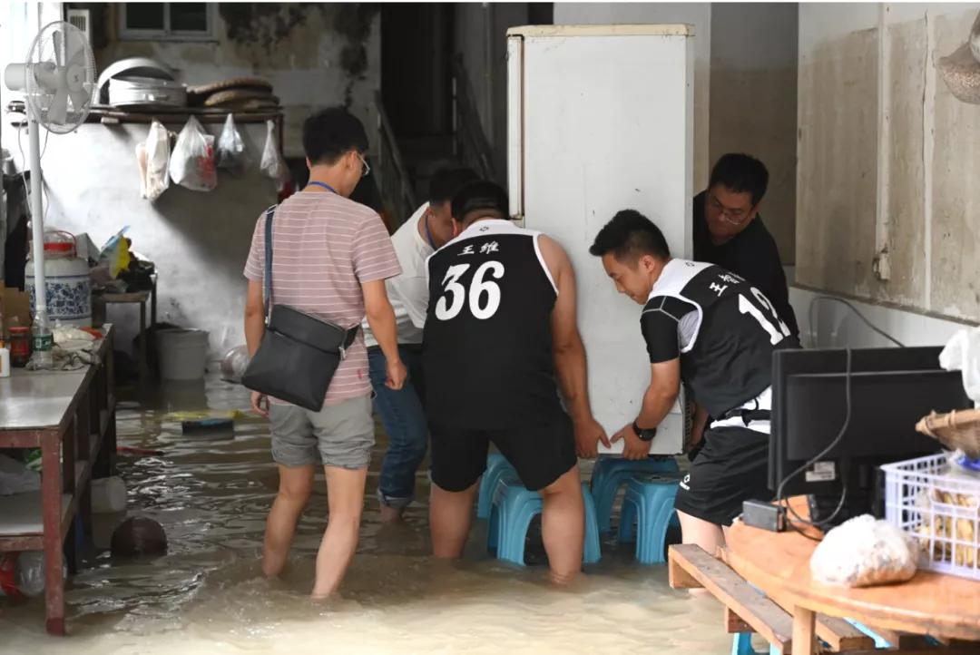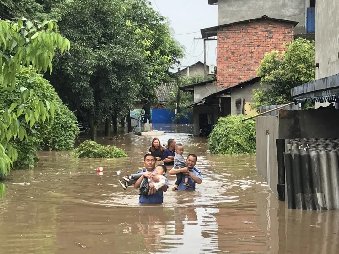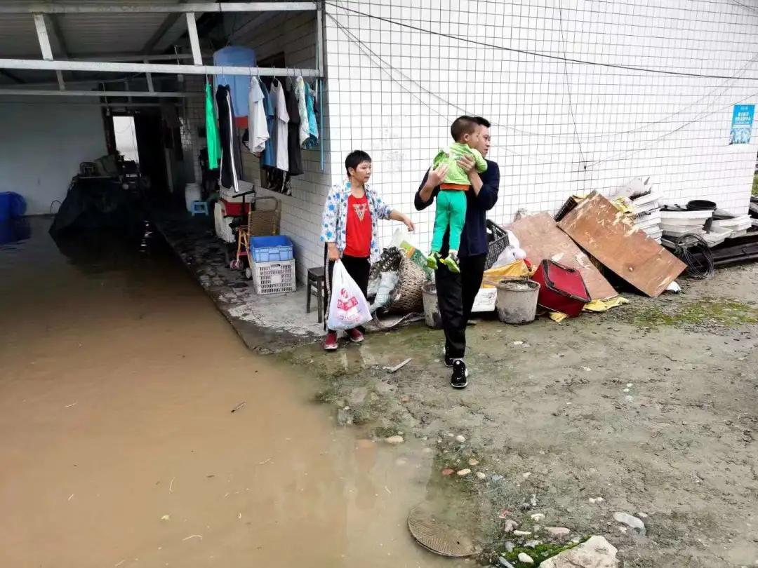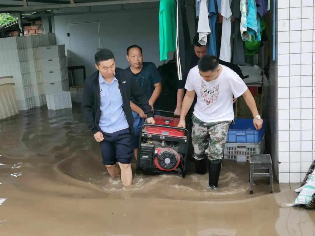 洪水漫入小區(qū),幫助群眾撤離