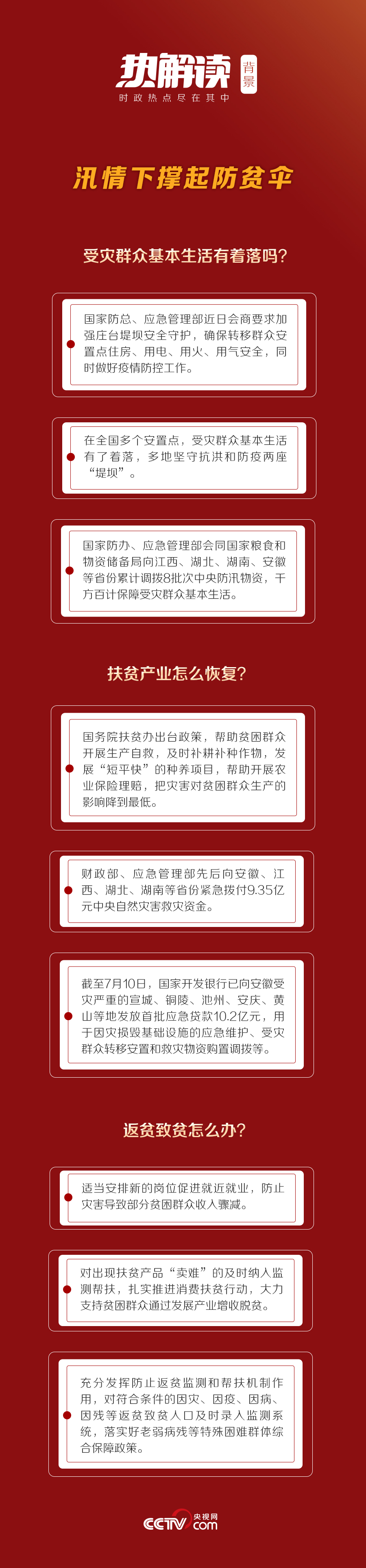 眼下,安徽省正抓緊落實(shí)35項(xiàng)政策措施以防止因洪澇災(zāi)害致貧返貧。多地村干部統(tǒng)計(jì)受災(zāi)家庭情況,倒塌房屋重建,政府戶(hù)均補(bǔ)助2萬(wàn)元;每吸納一位沿淮行蓄洪區(qū)貧困戶(hù)就業(yè),阜陽(yáng)市當(dāng)?shù)卣o予一次性補(bǔ)貼2000元,上不封頂;六安市157家扶貧車(chē)間已經(jīng)全面恢復(fù)生產(chǎn)……
