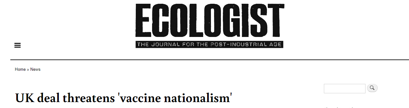 《生態(tài)學(xué)家》:英國疫苗協(xié)議助長“疫苗民族主義”風(fēng)氣