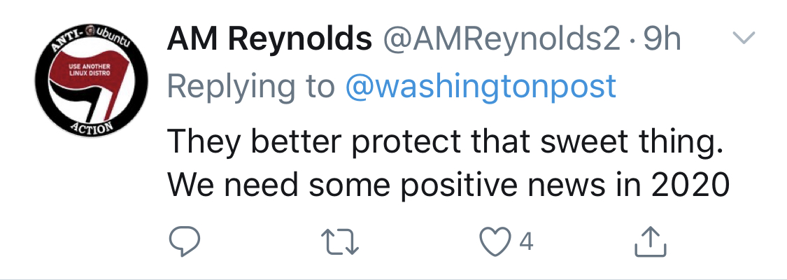 動(dòng)物園一定要保護(hù)好這個(gè)小寶貝,在2020年我們需要一些積極的消息。