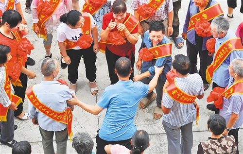 ▲陜西省漢中市洋縣龍亭鎮(zhèn)柳山村一組建檔立卡貧困戶周崇華(中后右二)在黨員干部的幫扶下,勤勞創(chuàng)業(yè),發(fā)家致富,被評為“脫貧民星”,在表彰會(huì)現(xiàn)場,村民你拉我拽爭著和他合影。近年來,該村定期在全村開展脫貧民星、文明家庭、致富帶頭人等各類先進(jìn)典型評選表彰,激勵(lì)廣大村民奮發(fā)有為,增收致富,爭先創(chuàng)優(yōu)。