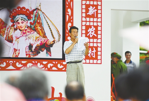 ▲柳山村八組村民杜振洲正在表演詩朗誦《柳山舊貌換新顏》。為促進(jìn)新時(shí)代文明實(shí)踐活動(dòng)的深入開展,該村積極組織形式多樣的文化活動(dòng),豐富村民業(yè)余文化生活。