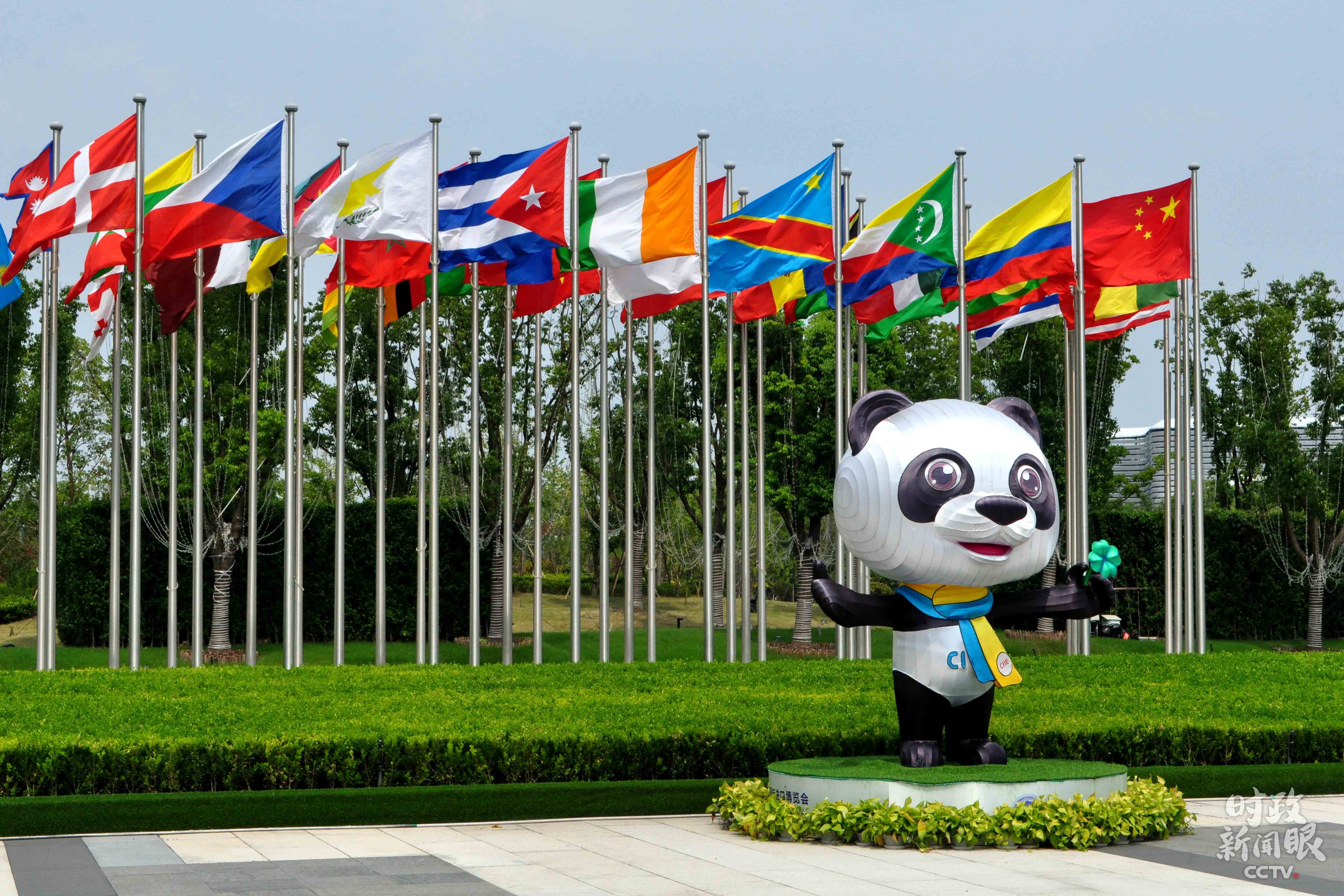 △7月27日,第三屆進(jìn)博會(huì)倒計(jì)時(shí)100天,場(chǎng)館外參展國(guó)國(guó)旗飄揚(yáng)。