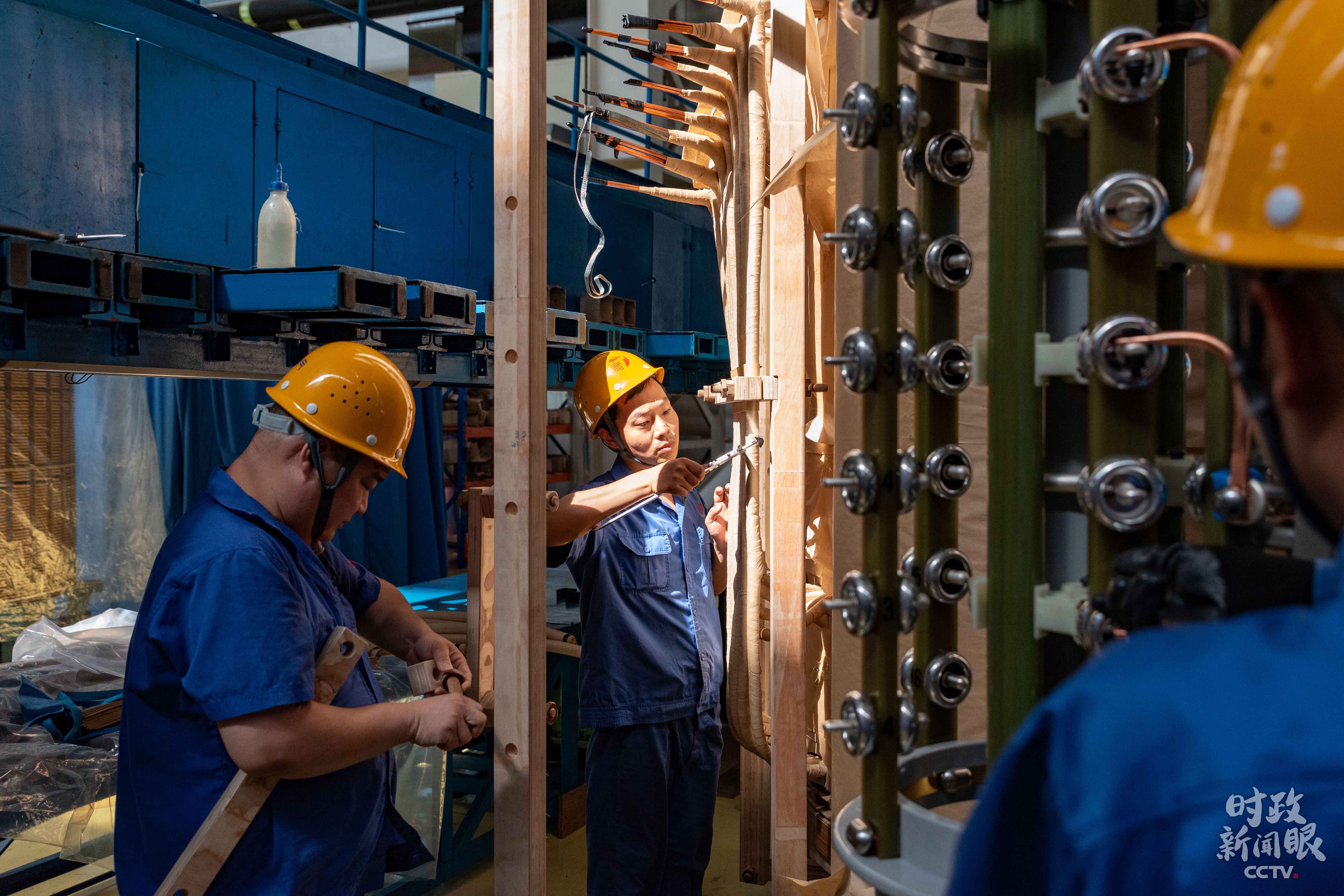 △合肥某變壓器公司生產(chǎn)車(chē)間里,工人正趕制訂單生產(chǎn)。