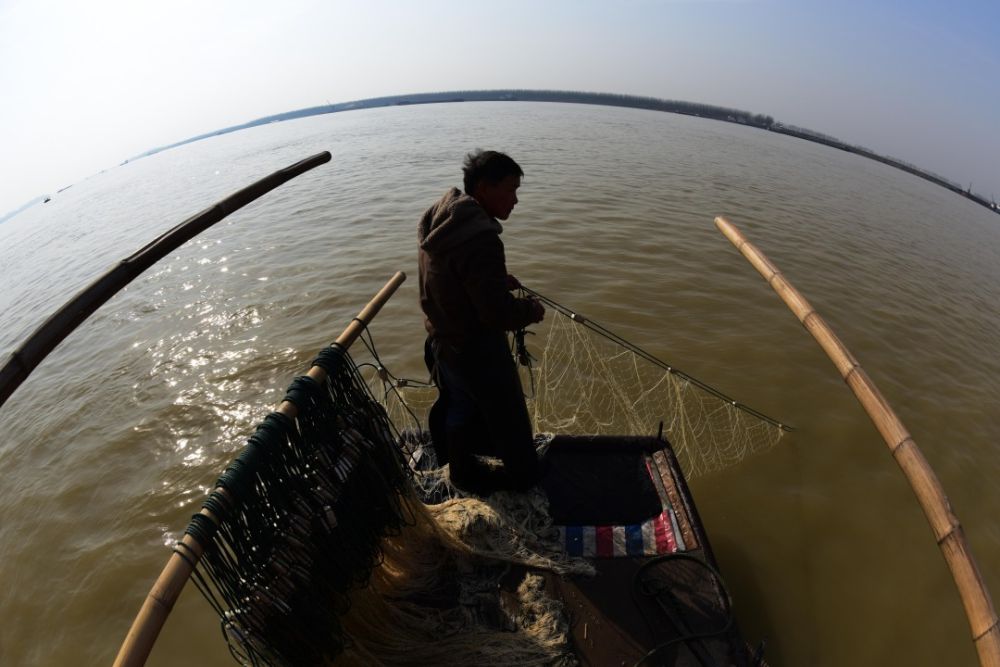 2016年長江禁漁期提前于3月1日開始,持續(xù)4個月時間。漁民們抓緊年后短短的捕撈期開工作業(yè),盡管每日出船勞作10多個小時,但難有收獲,經(jīng)常是空網(wǎng)上岸。(2016年2月18日,新華社記者 程敏 攝)