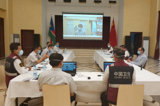 當(dāng)?shù)貢r間8月23日上午,中國政府抗疫醫(yī)療專家組在南蘇丹首都朱巴舉辦中國機(jī)構(gòu)企業(yè)疫情聯(lián)防聯(lián)控會議,為在南中資企業(yè)、援南醫(yī)療隊、援外項目組、中國籍國際職員等介紹新冠肺炎疫情防控知識。