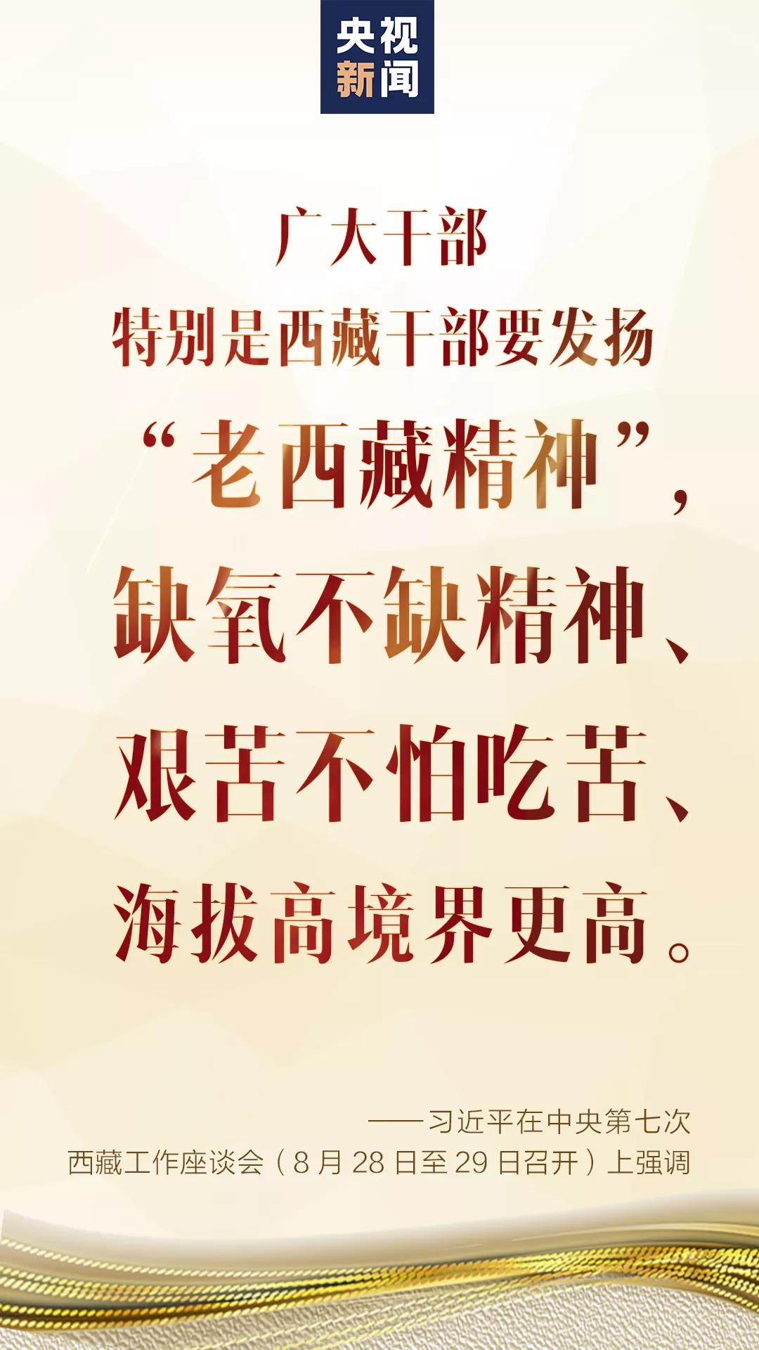 廣大干部特別是西藏干部要發(fā)揚“老西藏精神”,缺氧不缺精神、艱苦不怕吃苦、海拔高境界更高,在工作中不斷增強責任感、使命感,增強能力、錘煉作風;