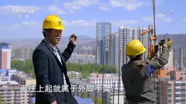 班彥村四社村民 呂志平:我承包的是外腳手架,主要負責安全這一塊。我踩的這個工字鋼,現(xiàn)在它是外腳手架的底部,這個挑起來,然后從這個上面立了鋼管,再往上起就屬于外腳手架。