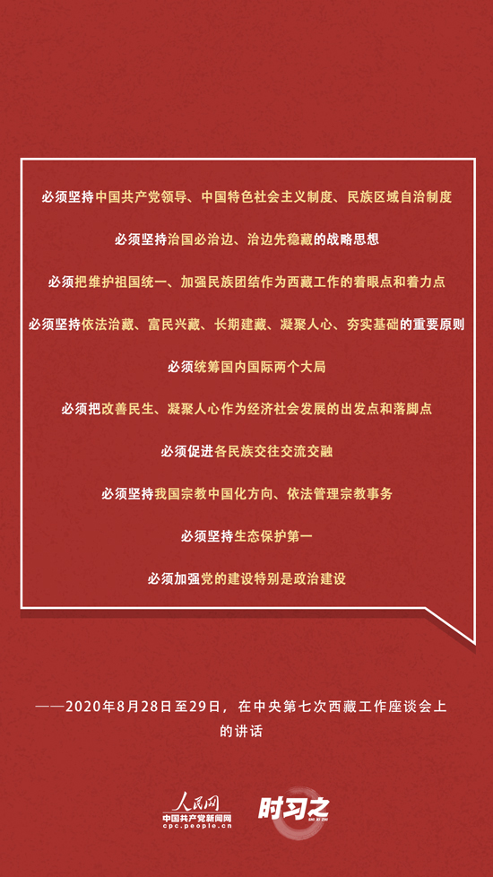 面對西藏工作面臨的形勢和任務(wù)的深刻變化,習近平在中央第七次座談會上強調(diào):“新時代黨的治藏方略是做好西藏工作的根本遵循,必須長期堅持、全面落實!睂Υ,習近平提出了10個“必須”——