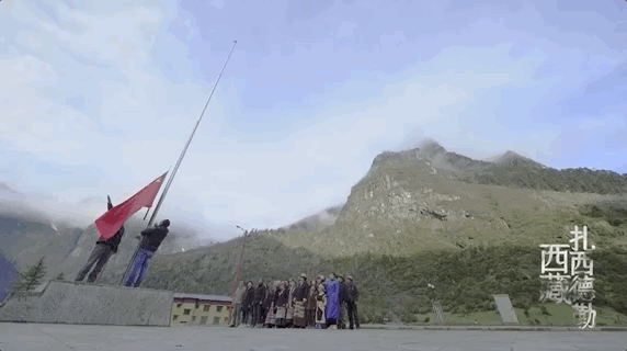△每周一的清晨,西藏隆子縣玉麥鄉(xiāng)村民都會舉行升國旗儀式,嘹亮的《義勇軍進行曲》響徹幽深的河谷。