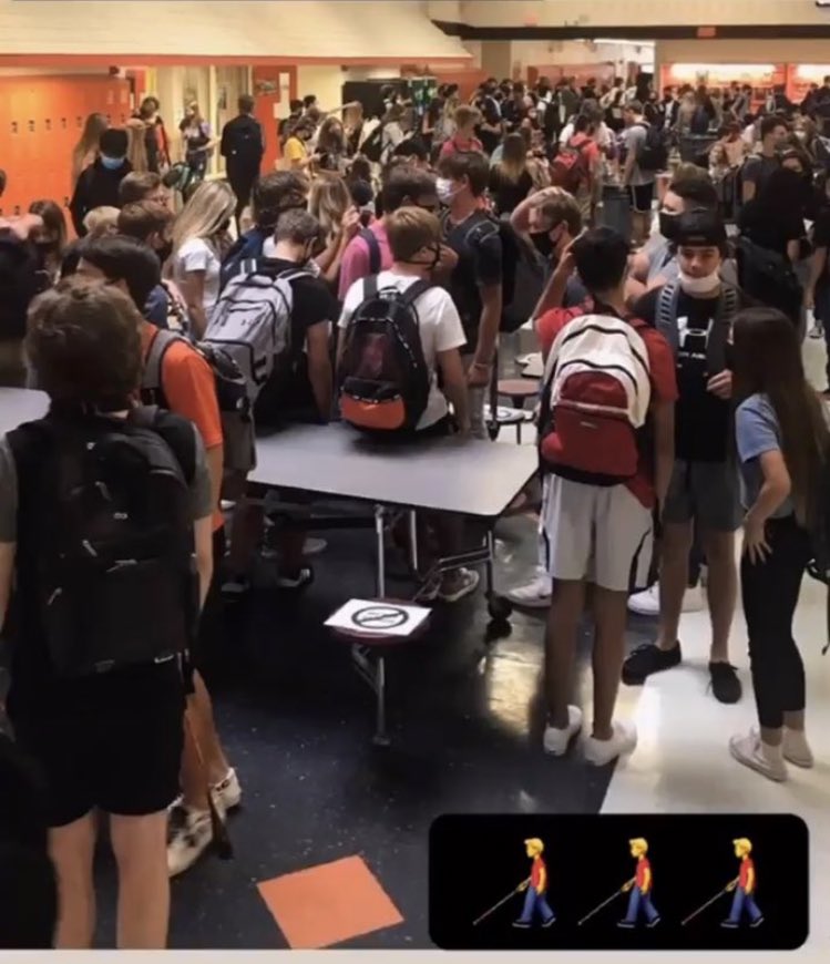 △佛羅里達(dá)州一所中學(xué)的開學(xué)第一天 圖片來源:《華盛頓郵報(bào)》