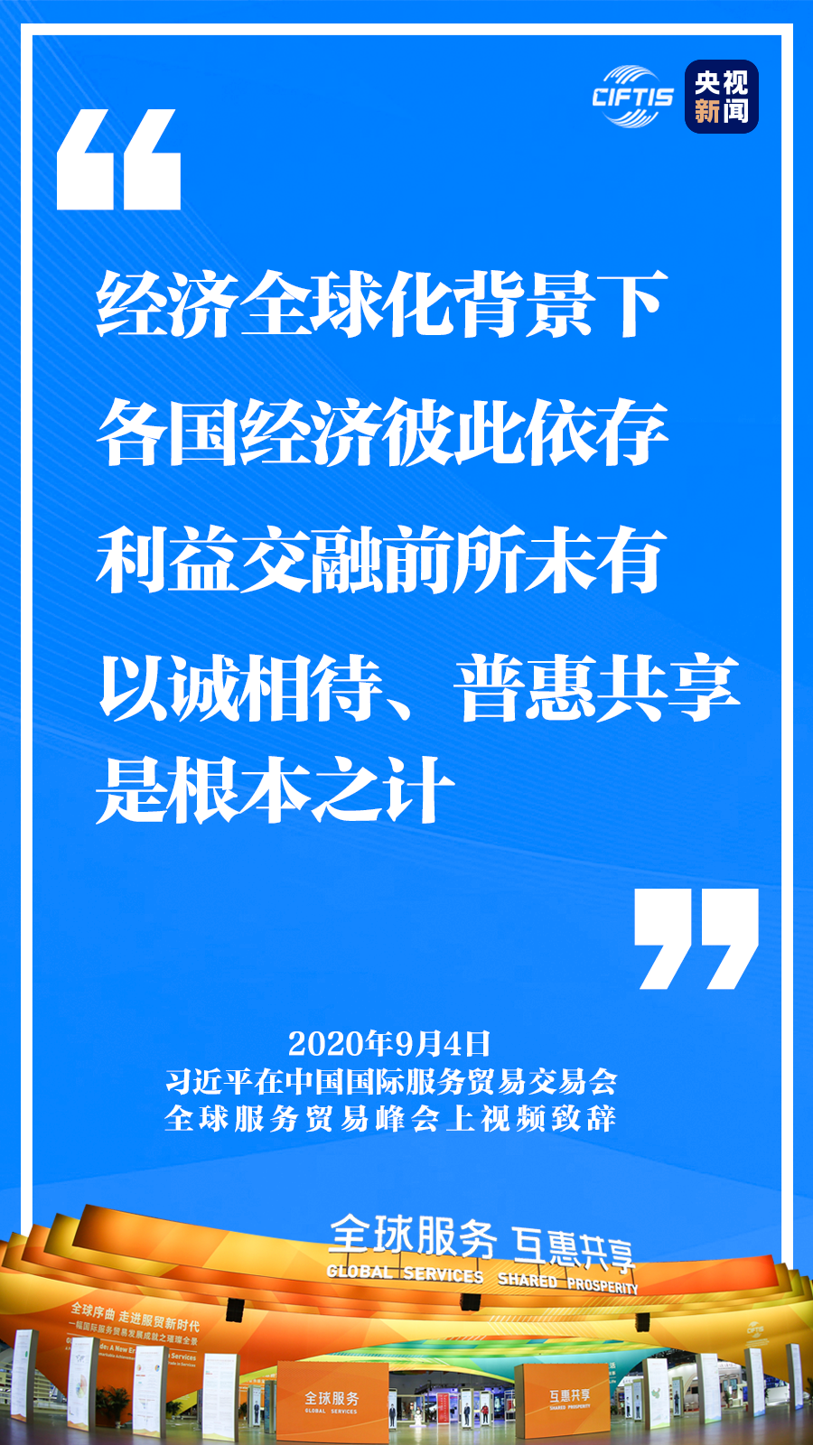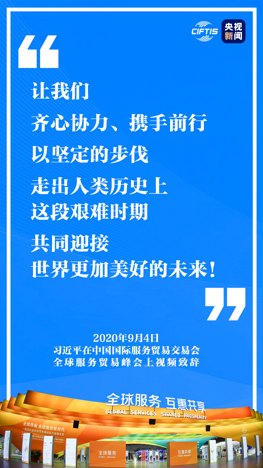 中國克服重重困難,舉辦這樣一場(chǎng)重大國際經(jīng)貿(mào)活動(dòng),就是要同大家攜手努力、共克時(shí)艱,共同促進(jìn)全球服務(wù)貿(mào)易發(fā)展繁榮,推動(dòng)世界經(jīng)濟(jì)盡快復(fù)蘇。