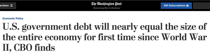 △《華盛頓郵報》:二戰(zhàn)以來,美國債務將首次超過其經(jīng)濟體量