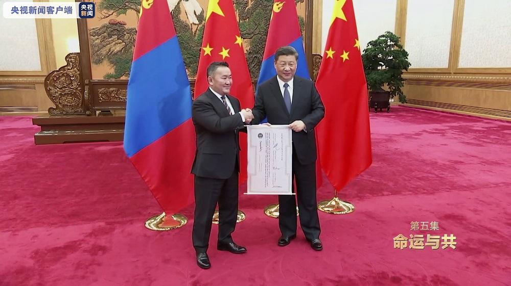 會談后,他向習(xí)近平主席遞交了蒙方向中方贈送3萬只羊的證書。