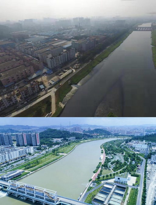 圖為茅洲河治理前后的對(duì)比。供圖:深圳市水務(wù)局