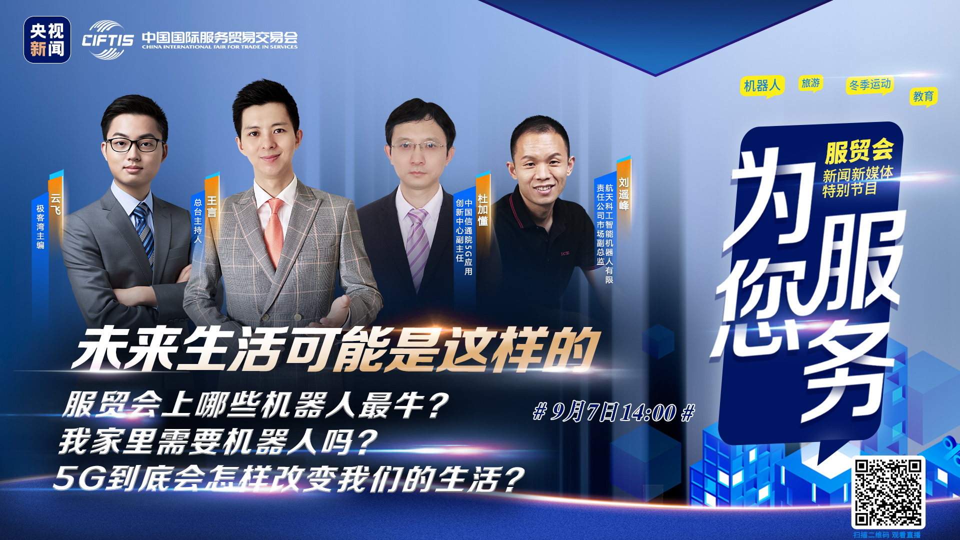今天(7日),服貿(mào)會(huì)特別節(jié)目《為您服務(wù)》繼續(xù)帶您逛展會(huì),邀請(qǐng)航天科工智能機(jī)器人有限責(zé)任公司市場副總監(jiān)劉遙峰等嘉賓做客央視新聞,共同體驗(yàn)機(jī)器人“總動(dòng)員”,看5G技術(shù)如何服務(wù)我們。