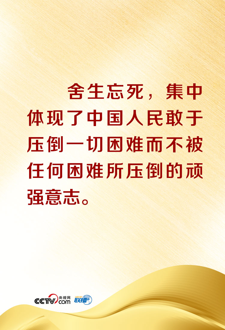 “在這場(chǎng)同嚴(yán)重疫情的殊死較量中,中國(guó)人民和中華民族以敢于斗爭(zhēng)、敢于勝利的大無(wú)畏氣概,鑄就了生命至上、舉國(guó)同心、舍生忘死、尊重科學(xué)、命運(yùn)與共的偉大抗疫精神!笨倳涍在講話中特別概括、闡釋了偉大抗疫精神,并深刻指出,偉大抗疫精神,同中華民族長(zhǎng)期形成的特質(zhì)稟賦和文化基因一脈相承,是愛國(guó)主義、集體主義、社會(huì)主義精神的傳承和發(fā)展,是中國(guó)精神的生動(dòng)詮釋,豐富了民族精神和時(shí)代精神的內(nèi)涵。央視網(wǎng)《聯(lián)播+》欄目特對(duì)相關(guān)內(nèi)容進(jìn)行梳理,與您共同在偉大精神中感受偉大的力量!