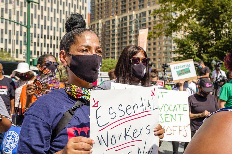 △面臨解雇風(fēng)險(xiǎn)的紐約市政府雇員舉行抗議 圖自《每日新聞》