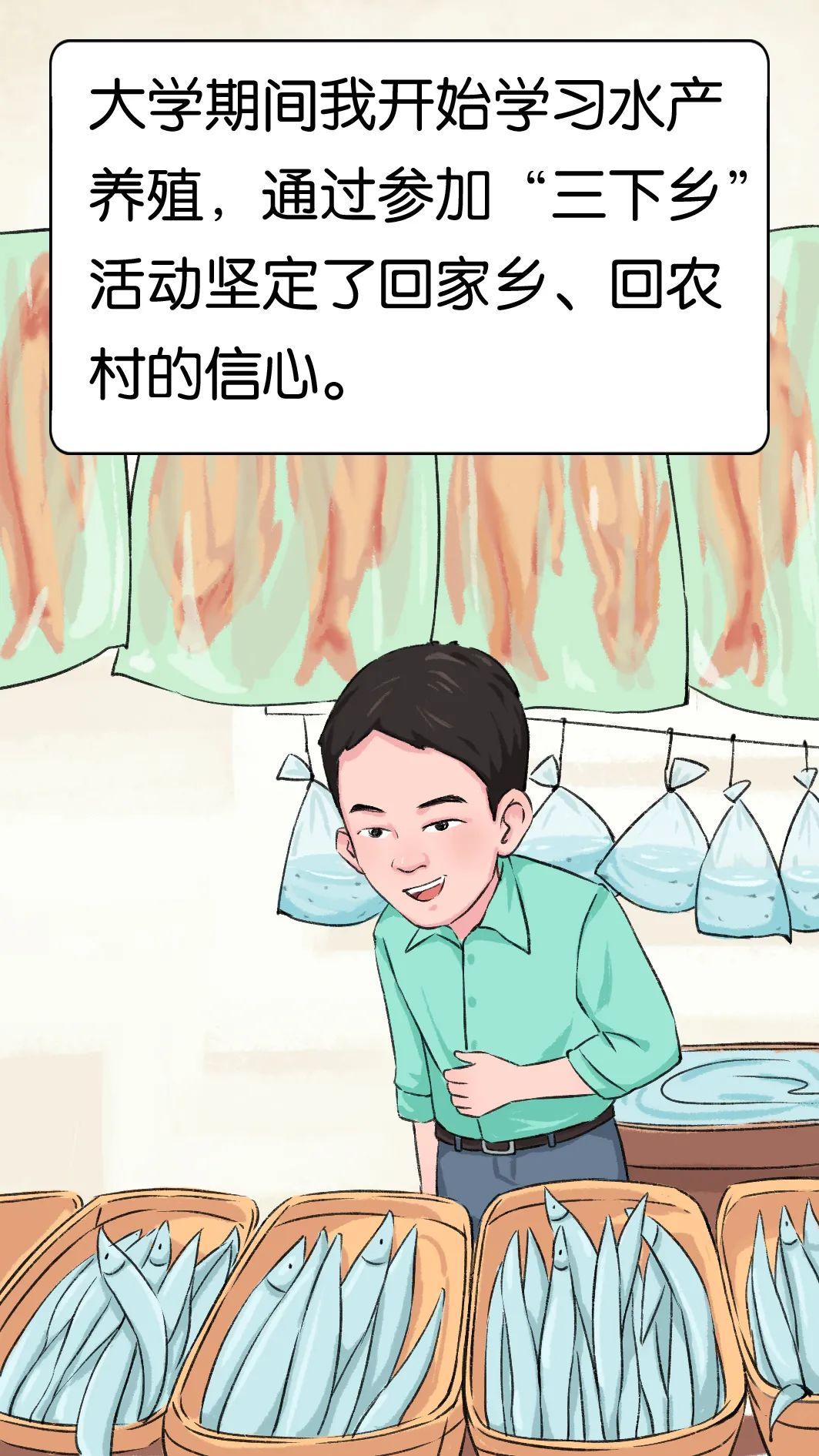 扎進(jìn)田間地頭、穿梭于公司、養(yǎng)殖基地和超市,來(lái)往于各大科研院所、奔波于各大水產(chǎn)交易市場(chǎng),解決一個(gè)個(gè)技術(shù)、管理、銷(xiāo)售上的難題,是“90后”新農(nóng)民林俊的日常生活。2015年,林俊還在廣州體育學(xué)院讀書(shū)時(shí),就已開(kāi)始學(xué)習(xí)水產(chǎn)養(yǎng)殖。在大學(xué)期間,他主動(dòng)參加“三下鄉(xiāng)”調(diào)研,了解到佛山現(xiàn)代農(nóng)業(yè)發(fā)展有很大的空間和發(fā)展前景,于是堅(jiān)定了回家鄉(xiāng)、回農(nóng)村的信心。