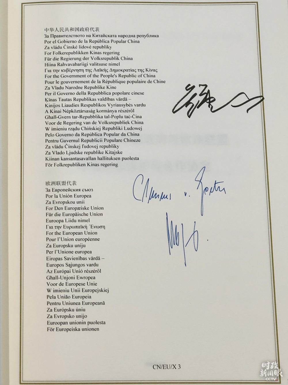 △中歐雙方代表的簽字(來(lái)源于歐盟駐華大使社交媒體)