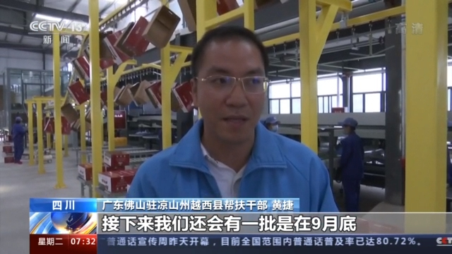 廣東佛山駐涼山州越西縣幫扶干部 黃捷:接下來我們還有一批是在9月底,我們會試水銷往香港、銷往澳門,把深山里面的好山好水出的好果銷往我們粵港澳大灣區(qū)。