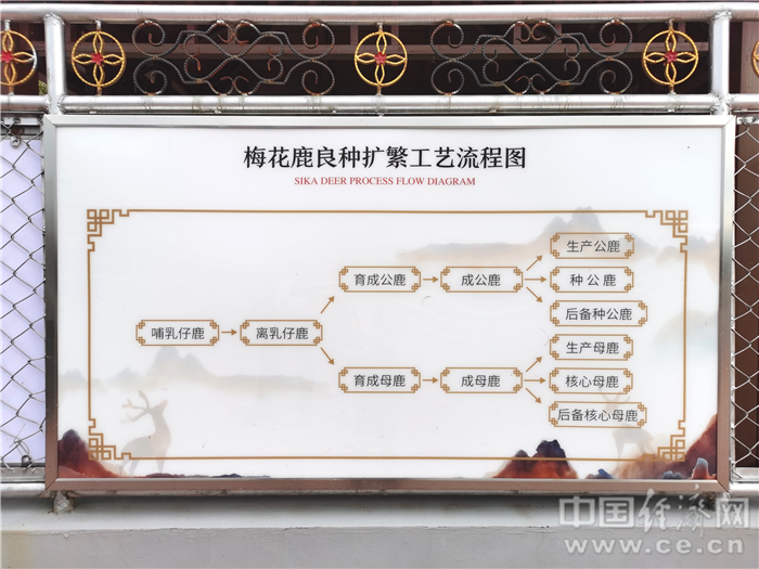 梅花鹿良種擴繁工藝流程圖。經(jīng)濟日報-中國經(jīng)濟網(wǎng)記者宋雅靜/攝