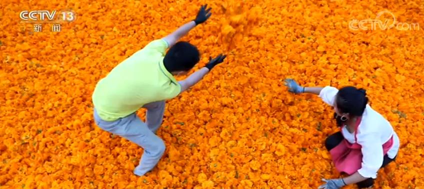 央視網(wǎng)消息:九月是收獲的季節(jié)。甘肅隴南100多畝萬壽菊迎來收獲,秋云秋月秋氣爽,秋菊秋雁秋收忙。甘肅張掖的十壩灘上,忙著晾曬紅辣椒的農(nóng)戶們,也曬出了紅紅火火的日子。