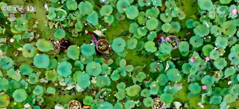 湖北襄陽的農(nóng)民駕駛著農(nóng)機(jī)收割水稻,也收獲了五谷豐登、遍地金黃。廣西北海一個(gè)漁港,海產(chǎn)品正在等待裝車,銷往全國(guó)各地。四川南充450多畝太空蓮也到了成熟時(shí)節(jié),當(dāng)?shù)卮迕癖持澈t,進(jìn)入荷塘,采摘蓮子,好不熱鬧。