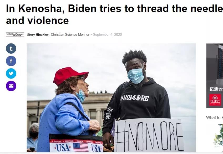 而在基諾沙參加抗議的密爾沃基大學(xué)學(xué)生阿卡迪亞·施密特則希望,美國(guó)政客不要譴責(zé)暴力事件,而要力挺游行示威,因?yàn)榻?jīng)濟(jì)損失無(wú)法跟人命相比。