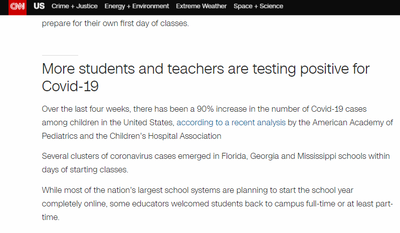 △CNN:佛羅里達(dá)州、佐治亞州和密西西比州都出現(xiàn)了開學(xué)后的聚集性疫情。