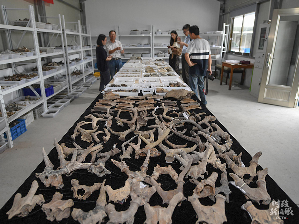 △井頭山遺址埋深5至10米,是迄今浙江和長(zhǎng)三角地區(qū)首個(gè)沿海貝丘遺址。文物庫(kù)房?jī)?nèi)擺放大量鹿角、貝殼等。