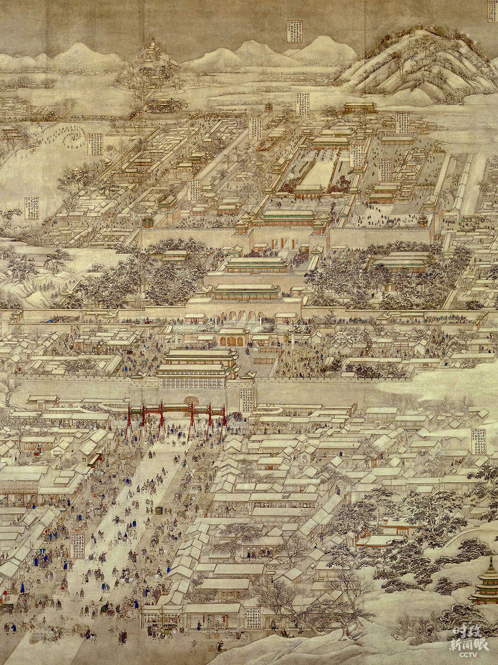 △這是《京師生春詩(shī)意圖》軸,由清代宮廷畫家徐揚(yáng)繪制。從上至下的鳥瞰式構(gòu)圖,為后人研究北京城城建布局提供了寶貴參考。(來(lái)源于故宮博物院官網(wǎng))