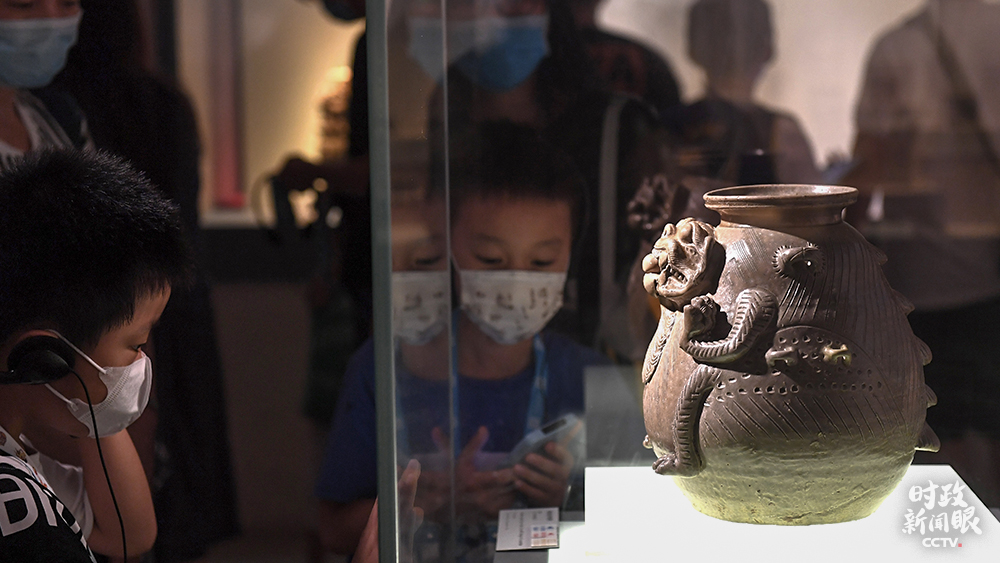 △暑期,學(xué)生在家長(zhǎng)陪同下參觀博物館。