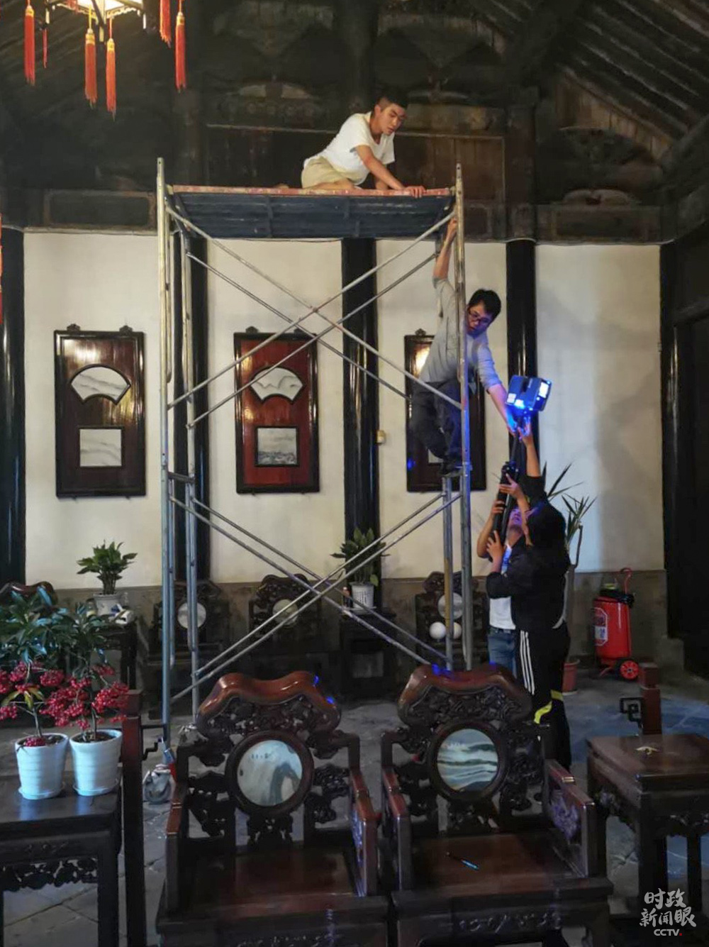 △北大考古文博學(xué)院學(xué)生架設(shè)三維掃描儀,開展文物建筑考古與測(cè)試實(shí)習(xí)。