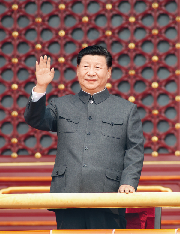 2019年10月1日,慶祝中華人民共和國成立70周年大會(huì)在北京天安門廣場(chǎng)隆重舉行。中共中央總書記、國家主席、中央軍委主席習(xí)近平發(fā)表重要講話并檢閱受閱部隊(duì)。這是習(xí)近平在天安門城樓上。 新華社記者 黃敬文/攝