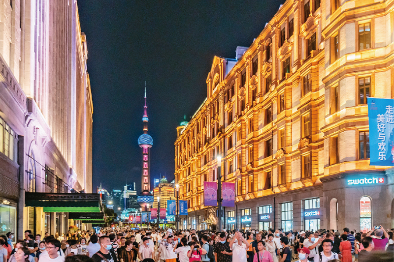 新冠肺炎疫情發(fā)生以來,我國統(tǒng)籌推進(jìn)疫情防控和經(jīng)濟(jì)社會發(fā)展,取得顯著成效。圖為2020年9月12日晚,上海南京路步行街東拓段正式開街。 中新社發(fā) 王岡/攝