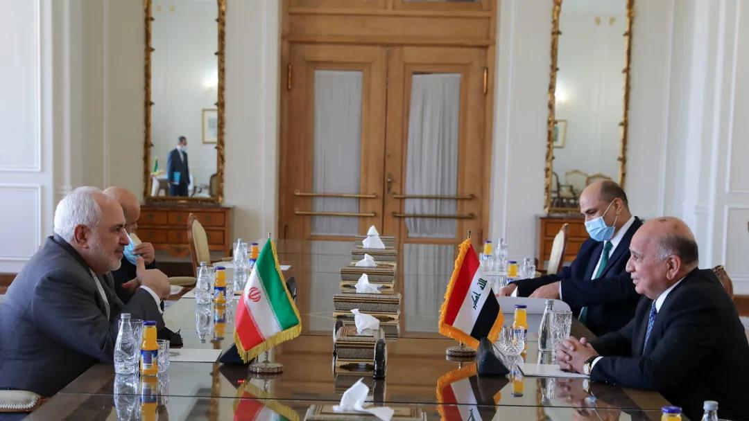△伊拉克外長福阿德·侯賽因(右)當(dāng)?shù)貢r間26日訪問伊朗并同伊朗外長扎里夫舉行會談。