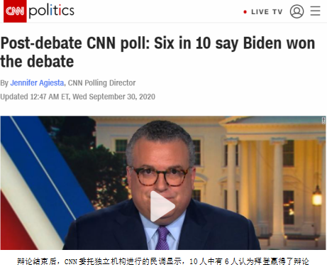 吐槽之余,主流媒體對這場辯論的勝負(fù)評價(jià),普遍傾向認(rèn)為特朗普失分更多,因?yàn)樗谋憩F(xiàn)過于咄咄逼人,導(dǎo)致辯論現(xiàn)場一片混亂,而拜登看起來更像是在行使自衛(wèi)權(quán)。