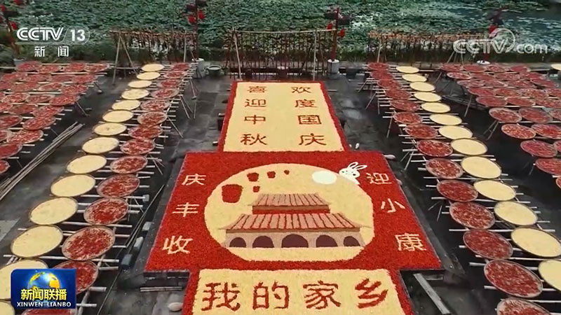 “雙節(jié)”喜相逢,家國共團(tuán)圓。安徽黃山呈坎村的曬秋習(xí)俗已經(jīng)延續(xù)了數(shù)百年,村民將玉米、辣椒等作物拼出各種文字和圖案,傳遞國家富強(qiáng)、小家興旺的喜悅心情。在新疆庫車,援疆干部和社區(qū)居民聚在一起跳起歡快的麥西來甫。在河南南陽岳家村,志愿者給留守兒童送去月餅,陪伴他們溫暖過節(jié)。在河北正定旺泉古街,上千名市民游客一同分享一個(gè)直徑2.4米的巨型月餅,開心和幸福洋溢在每個(gè)人的臉上。