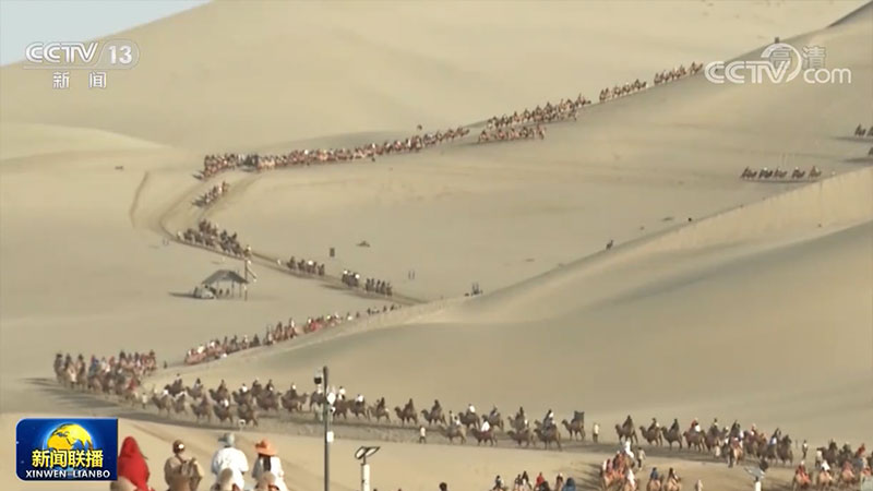 今天(10月1日),甘肅敦煌迎來大批自駕游游客,人們騎駱駝、爬沙山,共慶佳節(jié)。