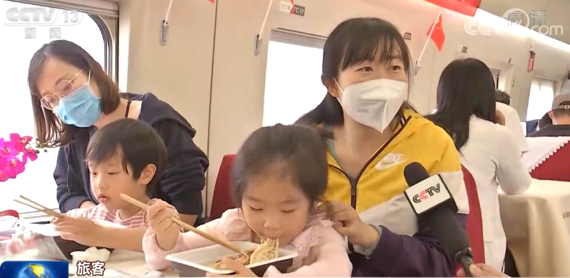 祖國的生日,就是大家的節(jié)日。車廂內(nèi)洋溢著濃郁的國慶氛圍。從北京開往武漢的高鐵列車上還給乘客準備北京的炸醬面、武漢的熱干面,讓大家以過生日吃“長壽面”的方式,回味家鄉(xiāng)味道,祝福祖國山河無恙、幸福安康。