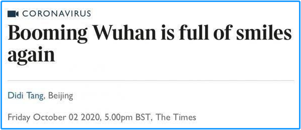 英國(guó)《泰晤士報(bào)》網(wǎng)站于10月2日發(fā)表的題為《蓬勃發(fā)展的武漢再次充滿歡聲笑語(yǔ)》的報(bào)道表示,國(guó)慶來(lái)臨,在武漢出現(xiàn)新冠肺炎疫情半年多后,這座城市再度充滿了活力。